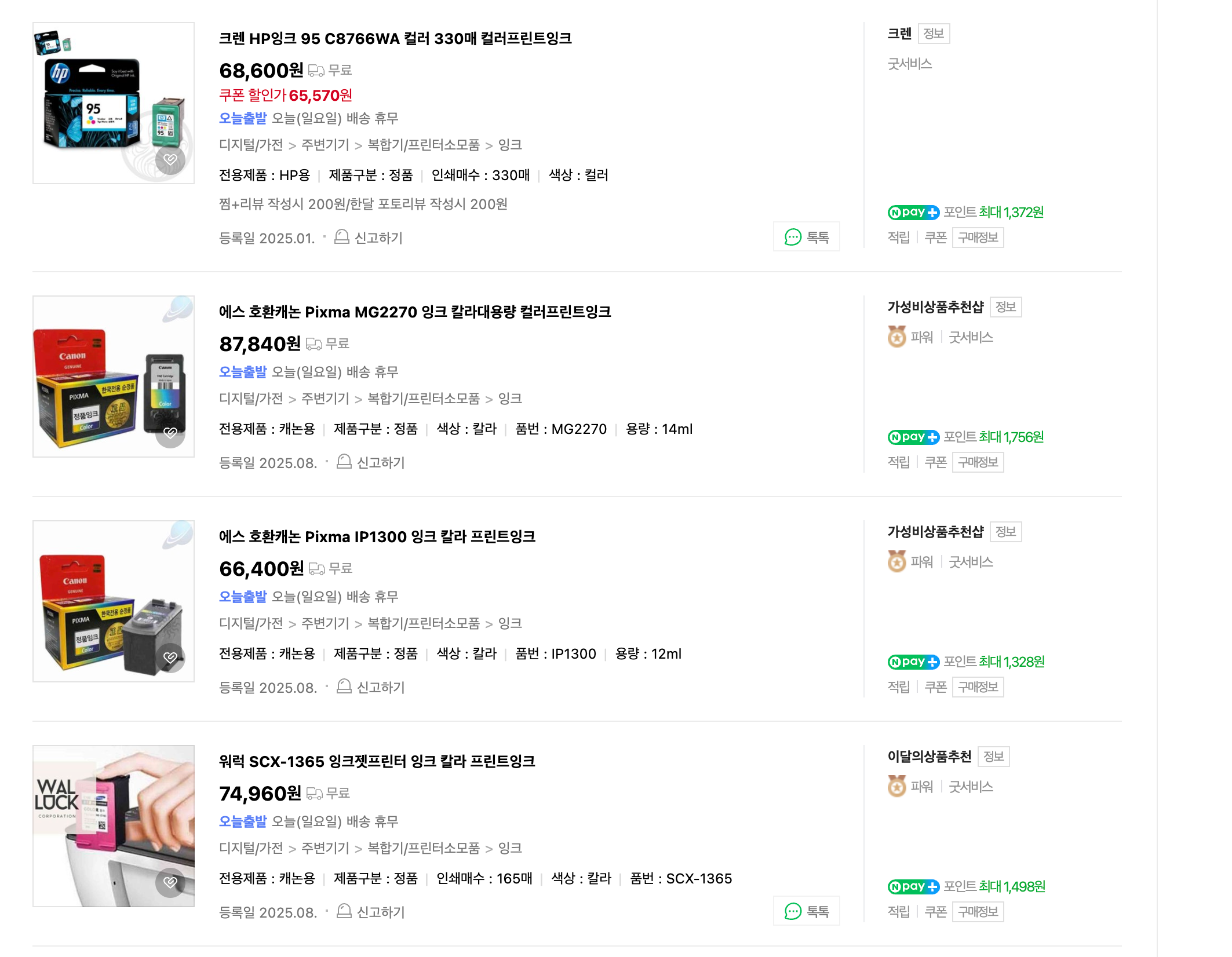 카트리지와 컬러 프린트는 가격이 꽤 나갑니다. 이미지나 색상을 많이 추가할수록 잉크가 더 나갈겁니다.
