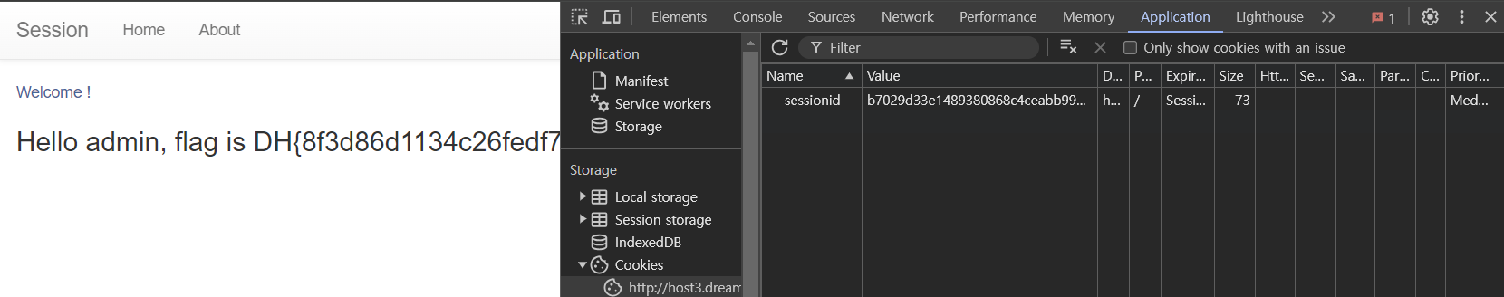 이를 통해 admin 으로 바꿔준 후 페이지를 새로고침하게 되면 아래 사진과 같이 FLAG를 확인할 수 있다.
