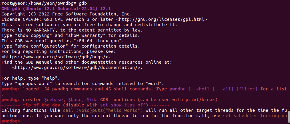 gdb의 플러그인 중에서 바이너리 분석 용도를 널리 사용되는 플러그인들은 gef, peda, pwngdb, pwndbg 등이 있다.