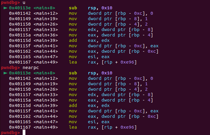 0x000000000040113e <+8>: lea rax,[rip+0xebf] # 0x402004