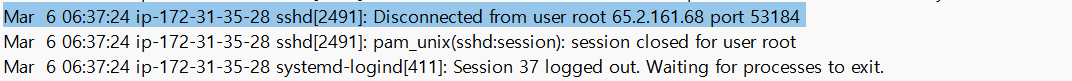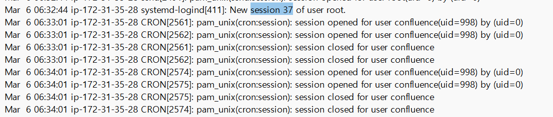 session closed for user root 이 문구를 통해 찾을 수 있었다.