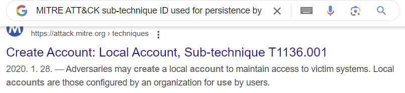 What is the MITRE ATT&CK sub-technique ID used for persistence by creating a new account?