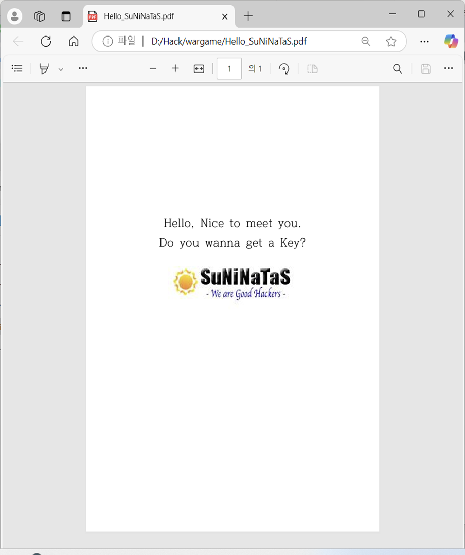 두 번째로, Hello_SuNiNaTaS의 PDF 파일의 버전은 1.4였습니다. 이를 통해 다른 PDF 버전을 사용했으며, 숨겨진 파일이 있다는 것을 어느 정도 확신할 수 있습니다.