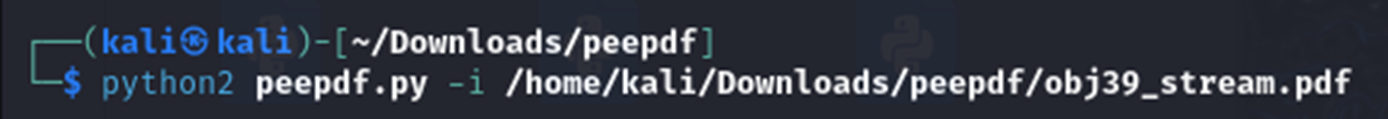 peepdf.py를 통해 실행을 시켜줬는데, python2여야지 열리는 것 같아 앞에 따로 버전을 명시해줬습니다.