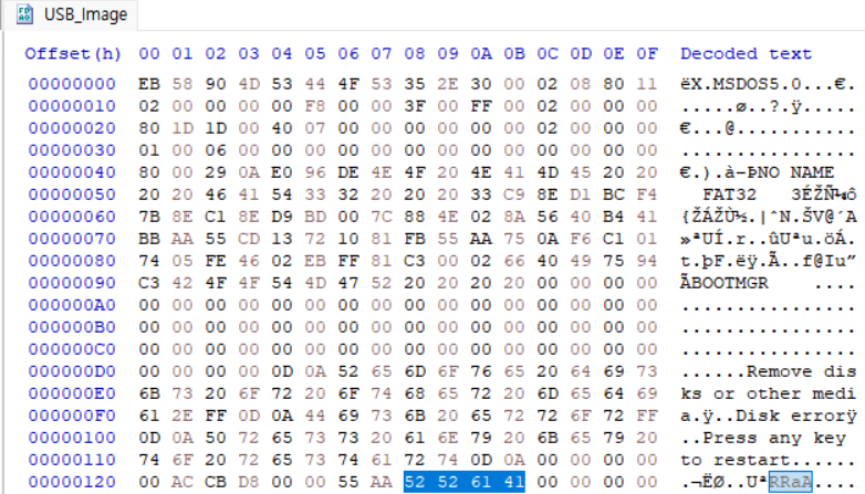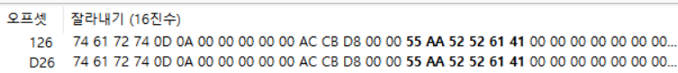| FSINFO | 0x00 | 52 52 61 41 (RRaA) | FSINFO 시그니처 1 (FSINFO 파일의 유효성 확인). |