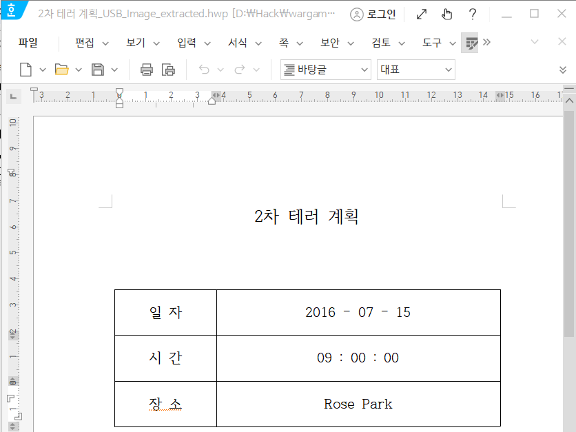 다음 테러 장소는 Rose Park인 것 같고, 문서의 수정 일시는 속성을 통해 알 수 있었습니다.