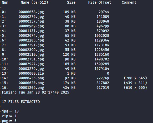 foremost는 주어진 문제 파일 안에서 존재하는 모든 파일 헤더와 푸터를 기반으로 데이터 복구 및 파일 카빙하는 도구이다.