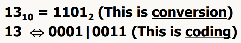 decimal number ↔ BINARY CODE : coding