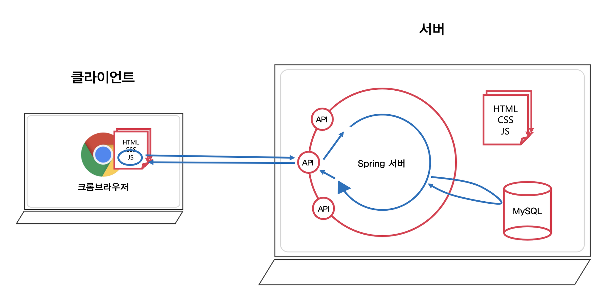 과거에는 서버가 주로 요청을 받아 html/css/js 파일을 반환