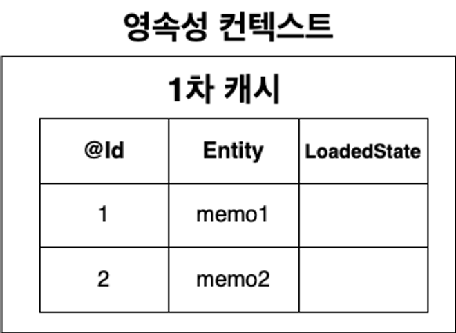 - 영속성 컨텍스트는 캐시 저장소 Key에 저장한 식별자값을 사용하여 Entity 객체를 구분하고 관리