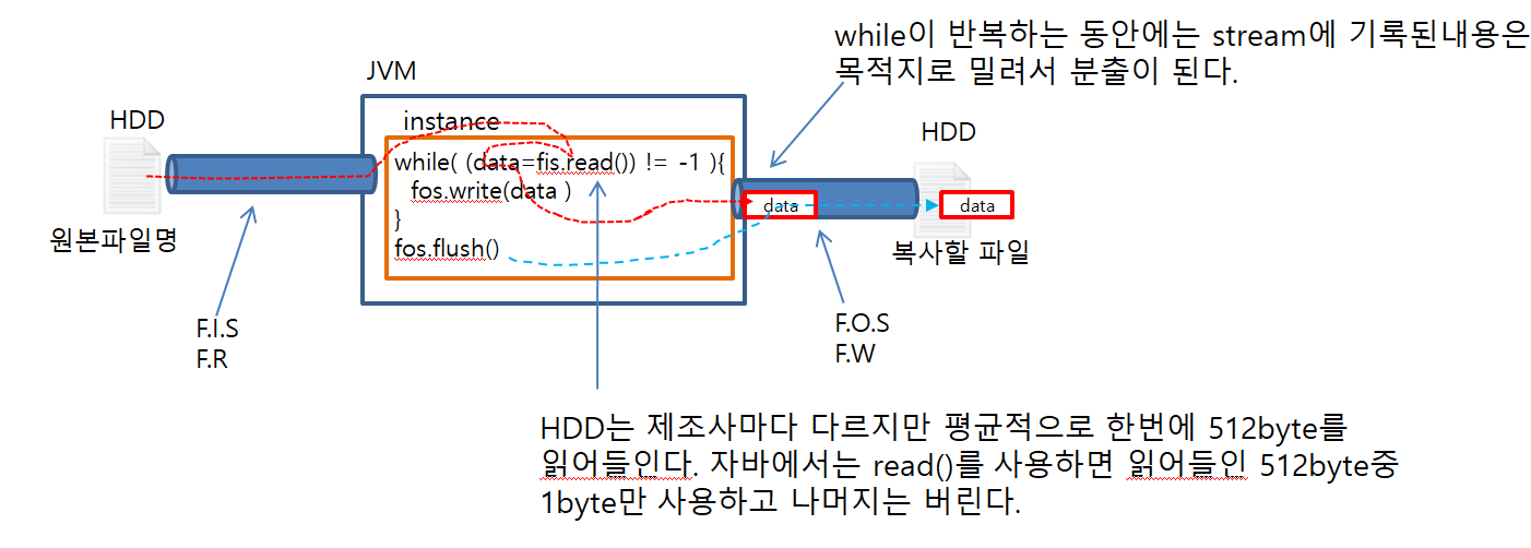 //fis.read() : HDD에서 몇 바이트를 읽어 들이든 1Byte만 사용.