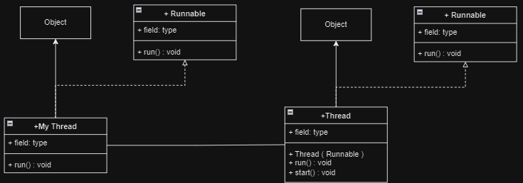 piblic class Test implements Runnable{piblic void run(){//(동시에 처리되어야 할 코드)