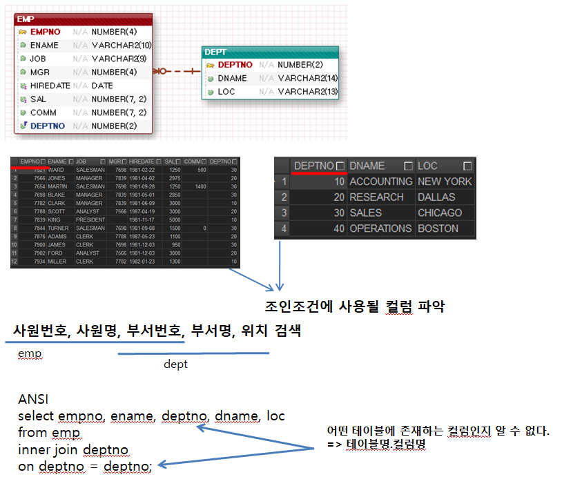 - ANSI문법과 Oracle Join 문법 두가지를 제공