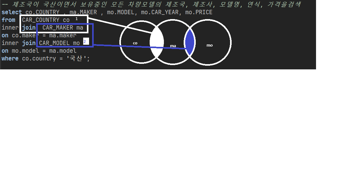 from 테이블명 alias, 조인할 테이블명 alias ,,,,