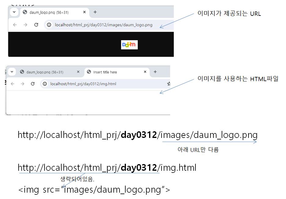 <img src="http://localhost/폴더명//이미지.확장자"><a href = "연결할 파일의 경로" target = "frame의 이름 속성">클릭할 메시지</a>