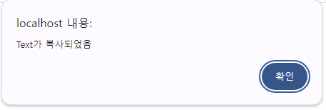 alert("Text가 복사되었음");
