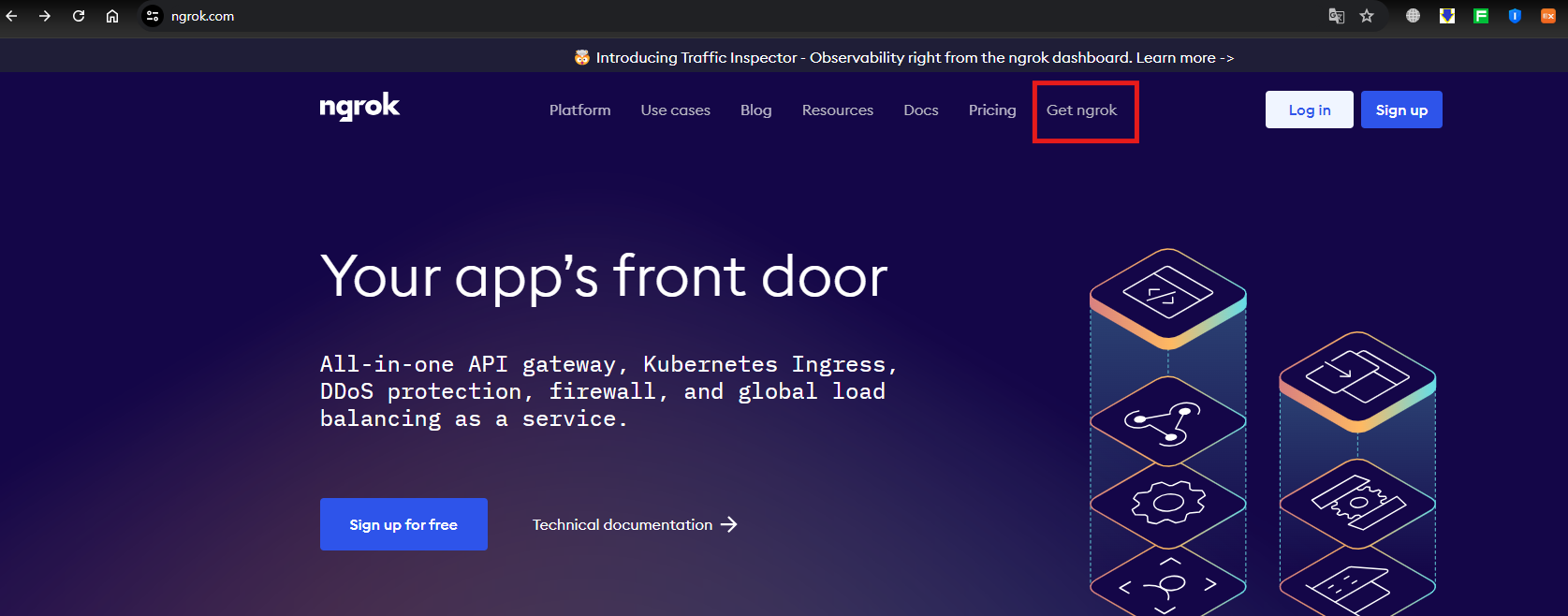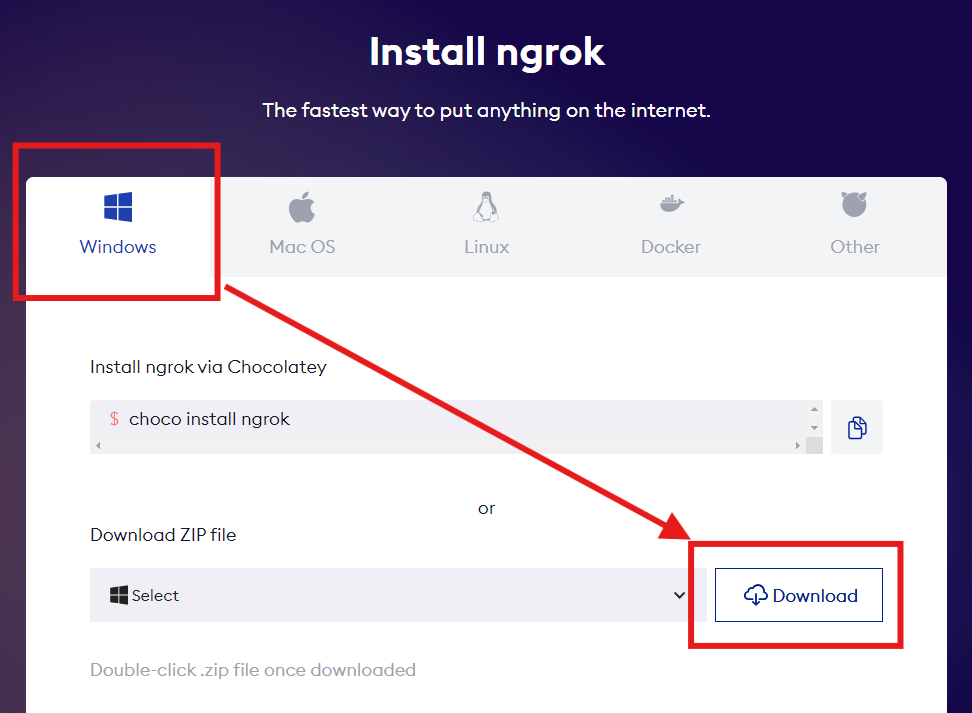 ngrok.io 접속 후 Get ngrok 탭 클릭
