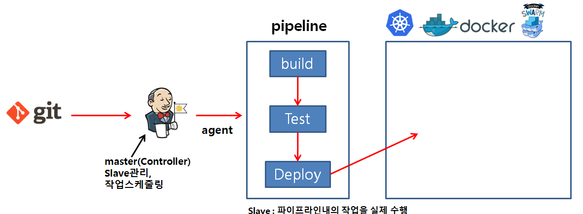 - Master : Controller라고 불리며, Jenkins slave를 관리하고 작업 스케줄링과 모니터링을 수행.