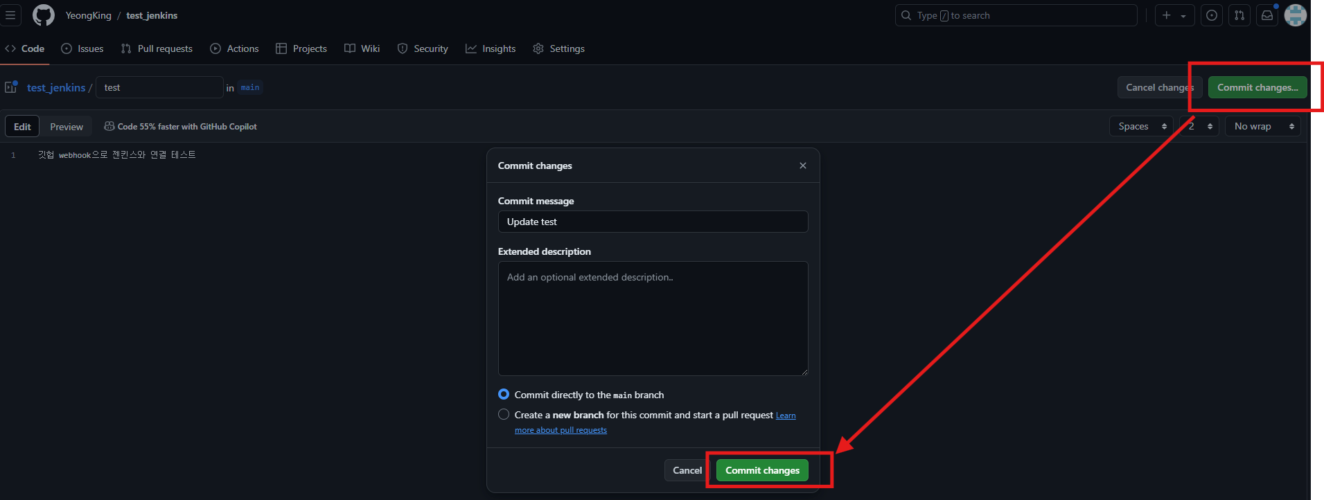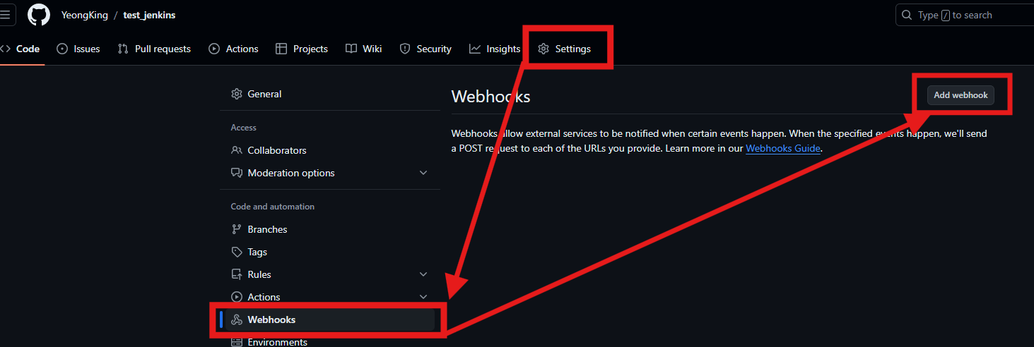 repository 생성 후 webhook 설정
