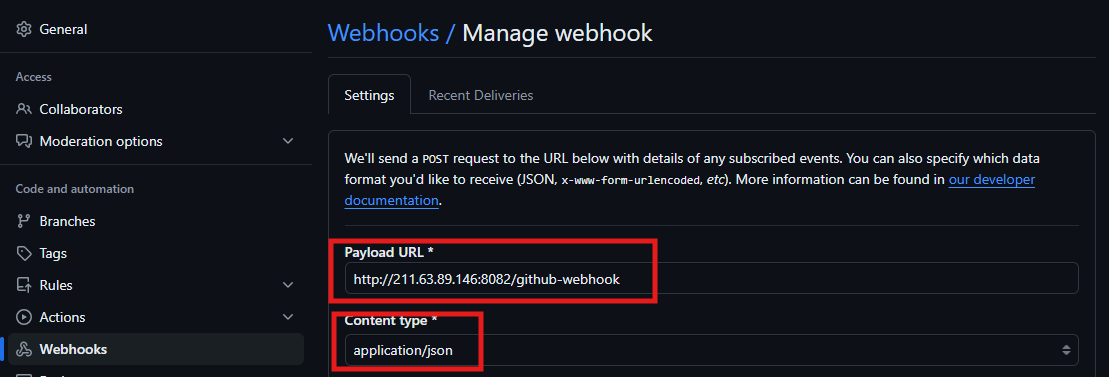 - Github Repository에 Webhook설정