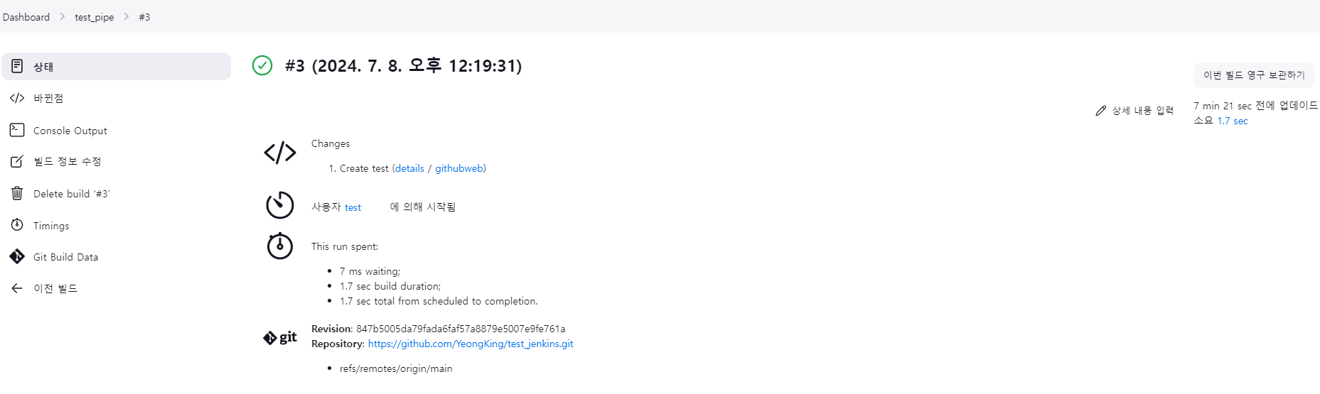 - GitHub에 push 될때마다 자동으로 젠킨스의 빌드를 시작한다.