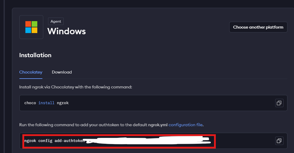 ngrok config add-authtoken 토큰값 을 cmd 관리자모드 실행 후
