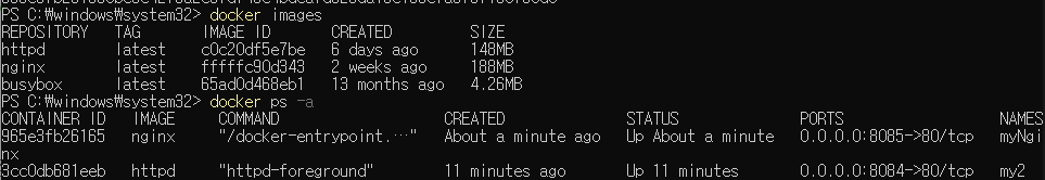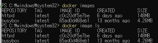 도커를 사용하거나 이미지를 관리하기위한 명령, Docker Hub와 registry에서 이미지를 다운로드 하거나 업로드할 때 사용.