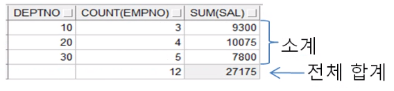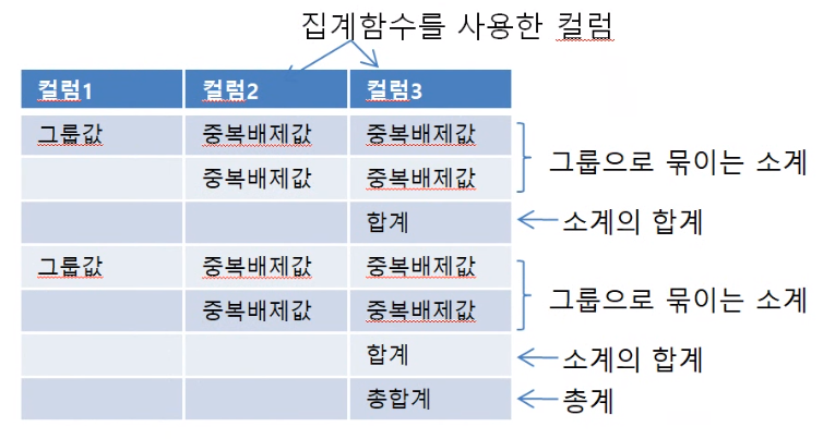 - 소계 후 합계가 출력되고, 마지막에 총 합계가 출력된다.