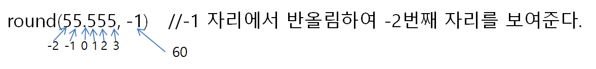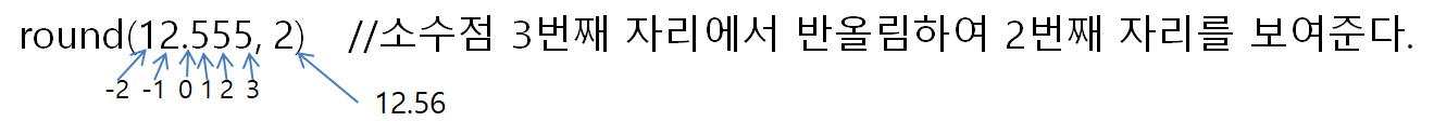 - 반올림 : round(값), round(값, 자릿수)