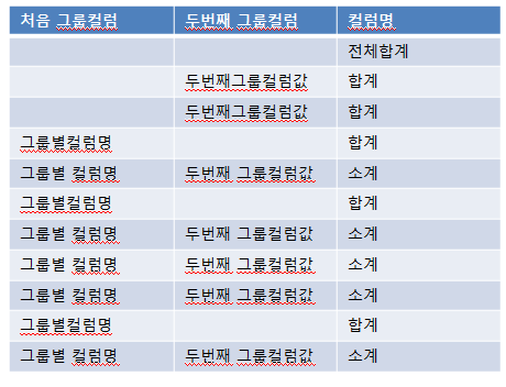 - 그룹별 전체 합계가 먼저 출력된 후 합계와 소계가 출력된다.