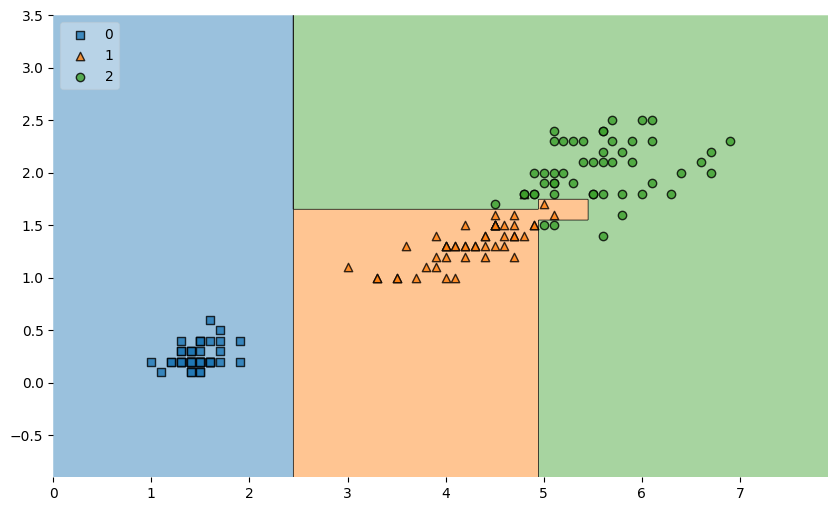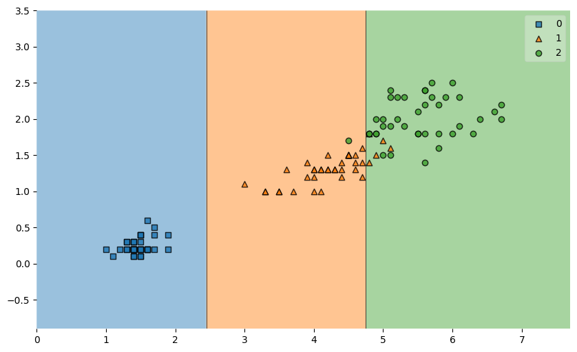 plot decision regions로 결정경계를 다시 확인해보면 이전보다 단순해졌다.
