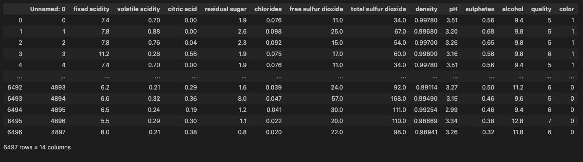 계속 사용하던 wine 데이터 불러오기. taste 컬럼을 생성해주고, X와 y를 나눠줌: