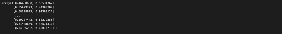 predict probability 확인 (데이터를 각각 0, 1로 예측할 확률에 대한 정보):