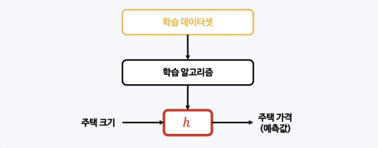 h = hypothesis로, 가설(=모델)을 의미한다.