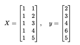 y = ax + b에 5개의 x, y를 대입해서 행렬 벡터로 만들어서 어쩌구저쩌고 OLS 공식을 통해 최소제곱해를 구해주면 되는데..