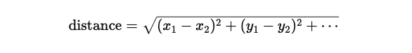 보통은 유클리디안 거리 사용 (유클리드 거리):