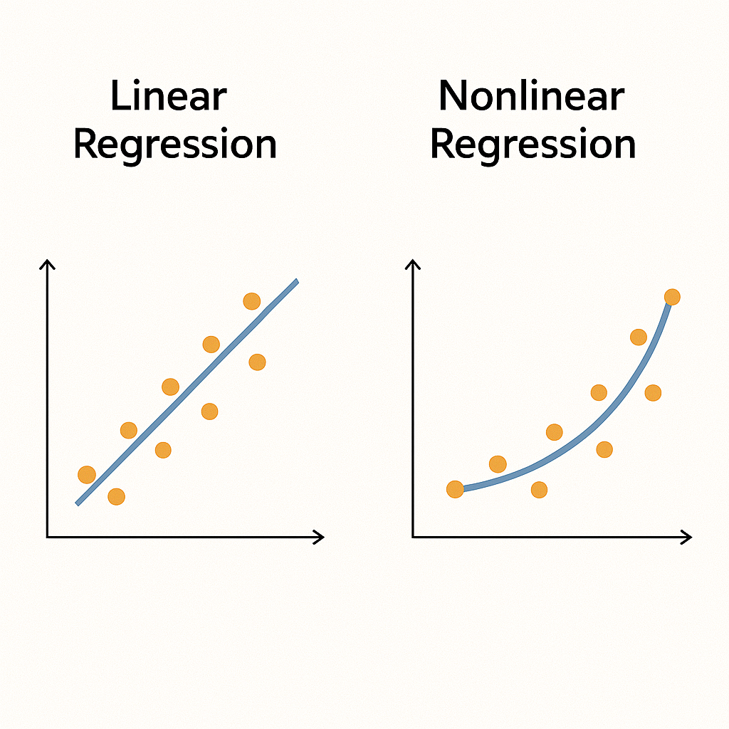 - 다항 회귀 (Polynomial Regression): 입력과 출력이 곡선 형태의 관계일 때