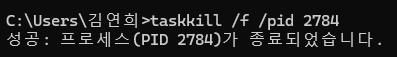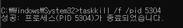 만약 위와 같은 방법으로 실행했는데 taskkill 이 실행되지 않을 수 있다.