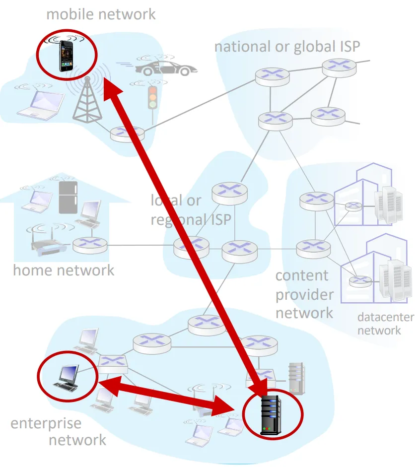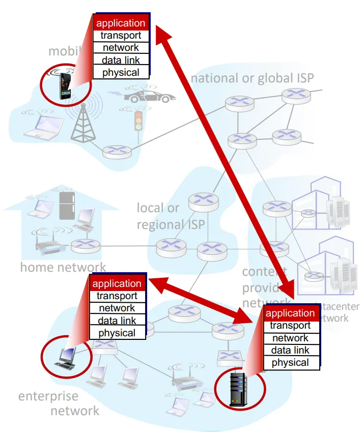 또한 애플리케이션 소프트웨어는 종단 시스템에만 존재하기 때문에, 네트워크 코어 장비에서까지 소프트웨어를 작성할 필요는 없다.
