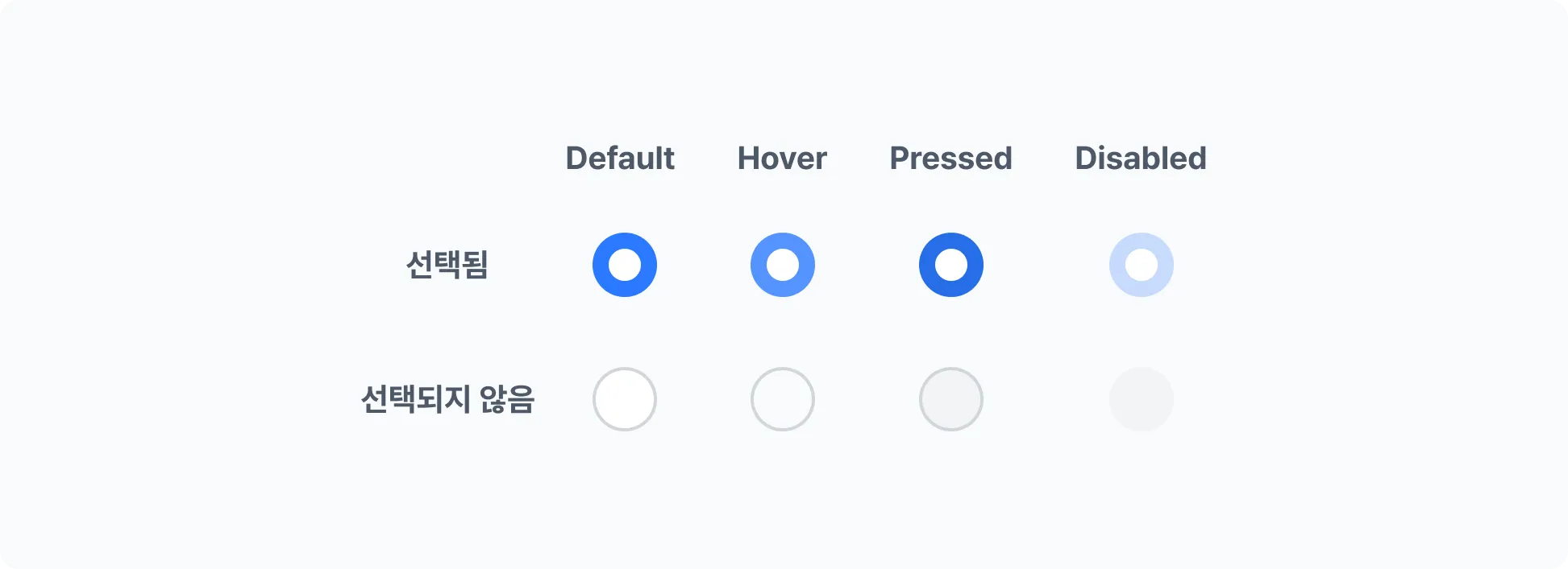 - ์ฒดํฌ๋ฐ์ค์ ๋ง์ฐฌ๊ฐ์ง๋ก, ๋ผ๋ฆฌ๋ ์ญ์ ์์ธํ๊ฒ ์ค๊ณํ๋ค๋ฉด ๋ ๋ง์ ์ํ๋ฅผ ๊ฐ์ง ์๋ ์์ด์.