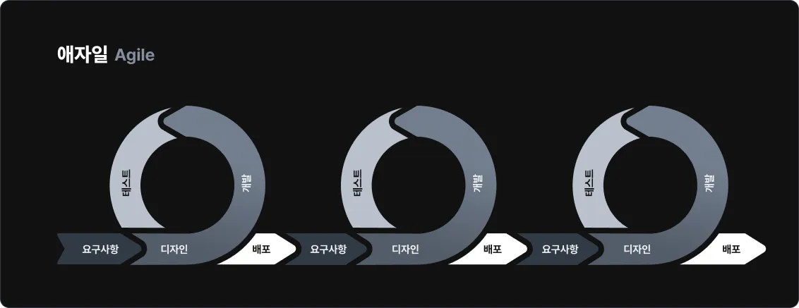 - 일정한 주기로 빠르게 제품을 배포해 사용자의 피드백을 받고 요구사항을 수정해 나가는 과정을 반복.