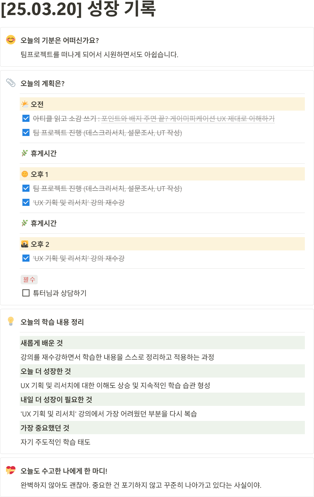 앞으로 UX 디자인을 할 때 단순한 보상 설계가 아니라, 사용자 내면의 동기와 행동 패턴을 깊이 고민해야겠다는 생각이 들었고, 좋은 게이미피케이션은 결국 재미를 넘어서 의미있는 경험을 제공해야 한다고 생각한다. 끗-