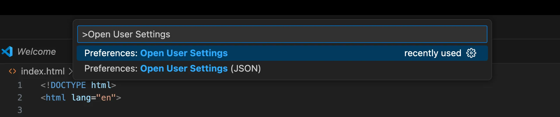 mac OS의 경우 키보드 command + shift + p 를 입력하고, windows OS의 경우 ctrl+shift+p **를 입력합니다. 그리고 Open User Settings를 입력하고 Preferences: Open User Settings**을 선택합니다.