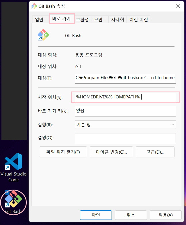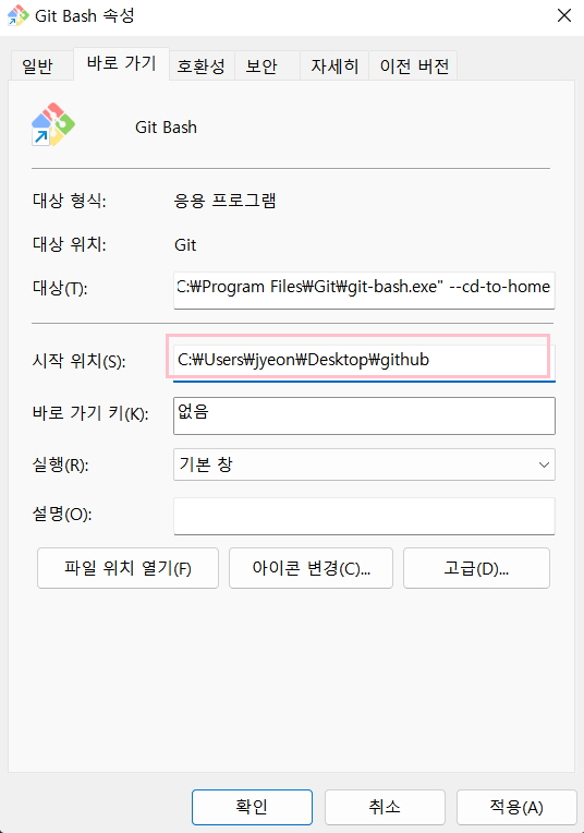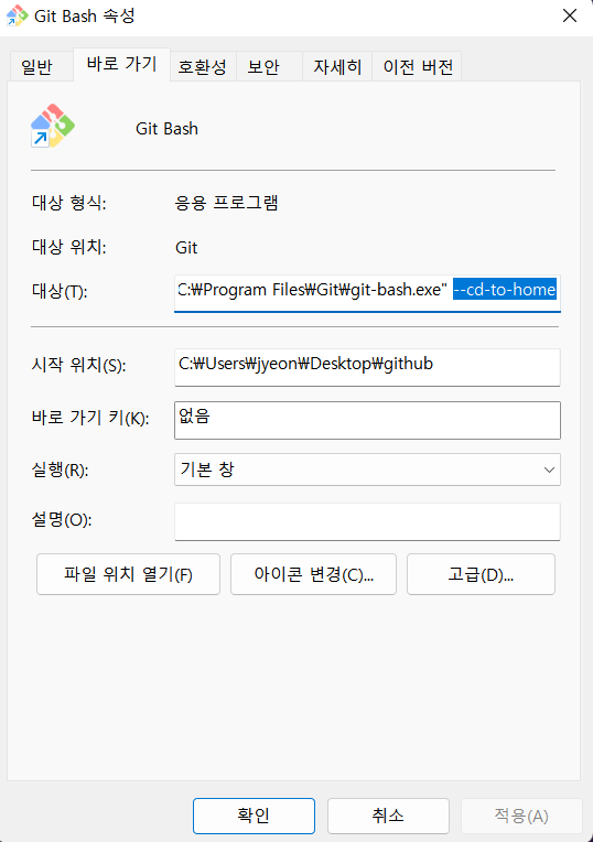 cd 치는 횟수를 줄이고 싶어요~~~ git bash 기본 경로를 바꿔줄게용