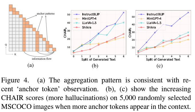 - the subsequent tokens may ignore the forehead image tokens and over-trust the closer summary tokens via their stronger attention attended, leading to hallucinations raised by the model bias