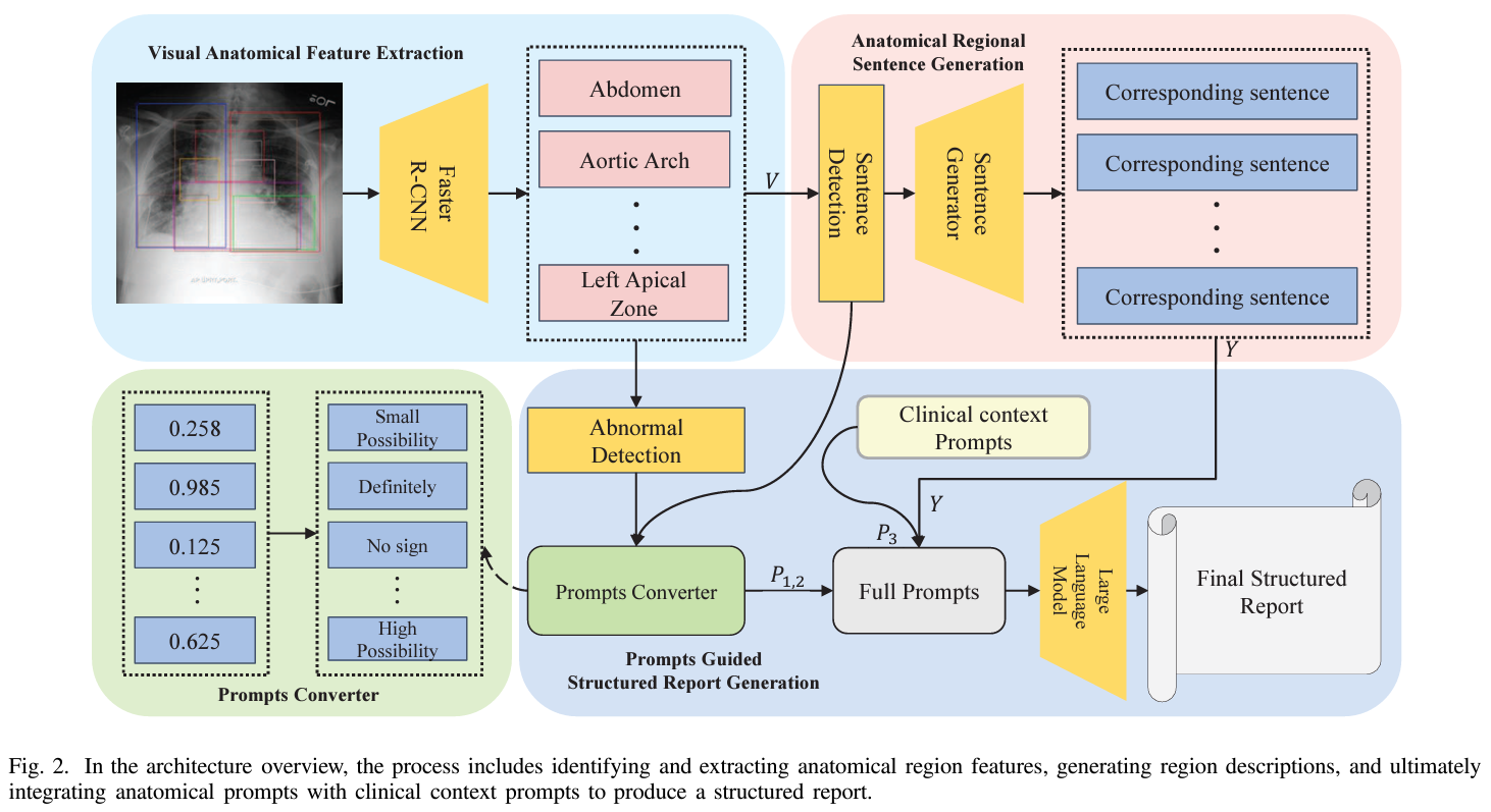 we utilize a large language model to integrate anatomical region descriptions, anatomical prompts, and clincial contextual prompts into a single anatomically based structured by coordinating and consolidating these data sources