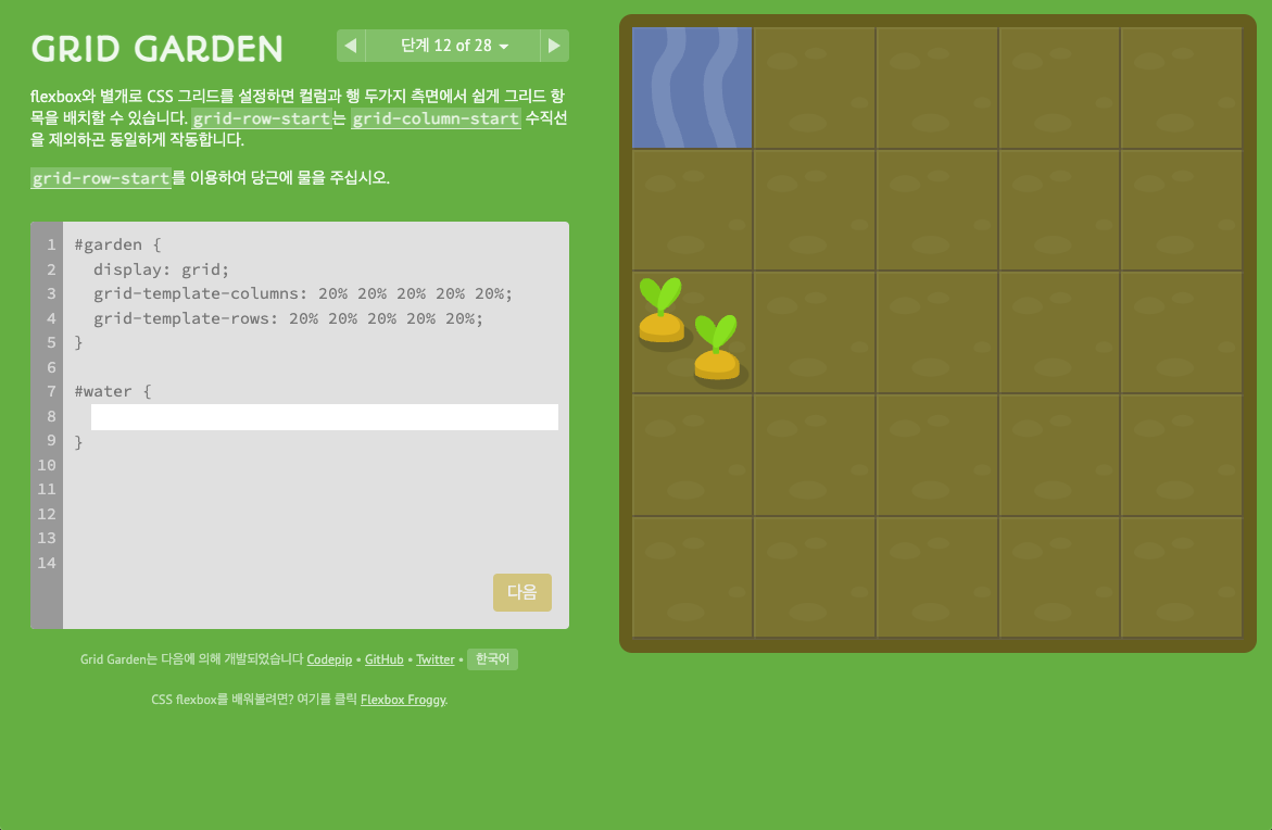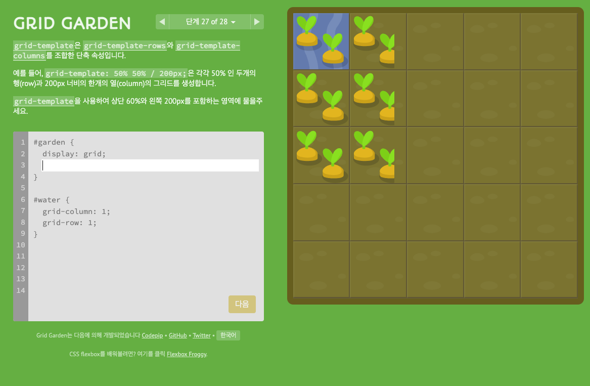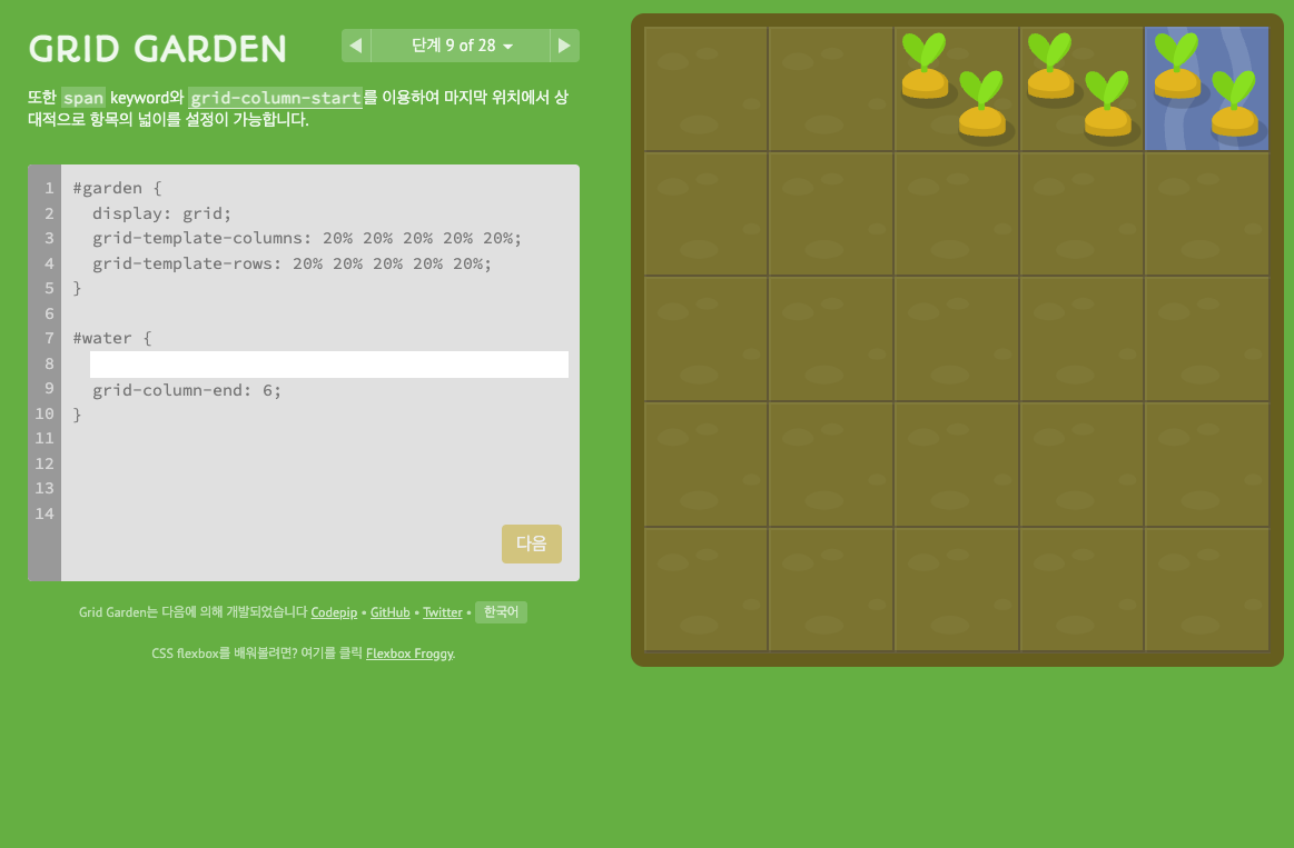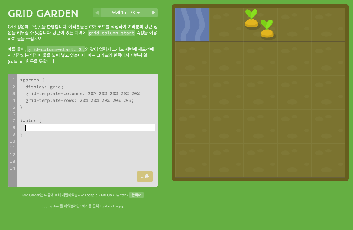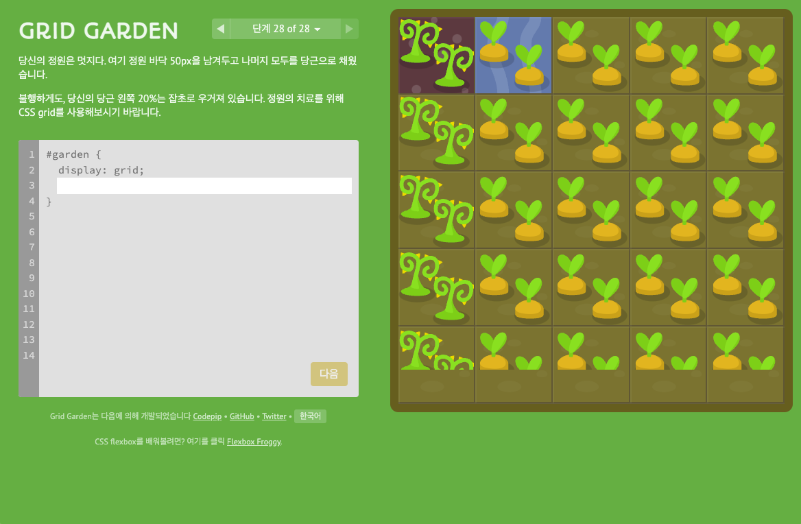 https://cssgridgarden.com/#ko로 들어가면 즐길 수 있다.