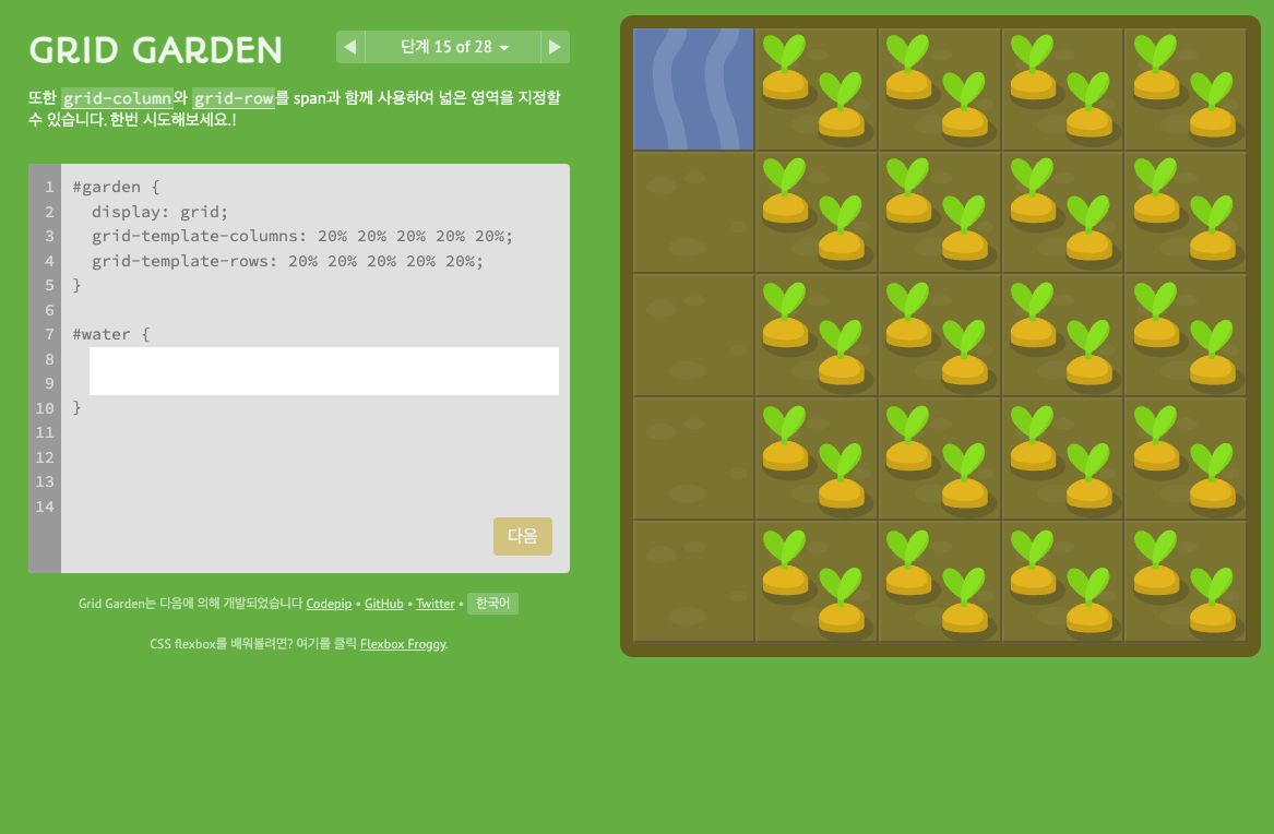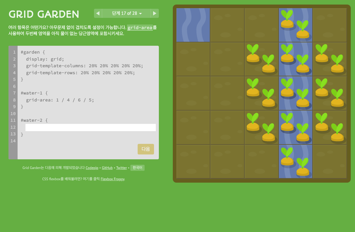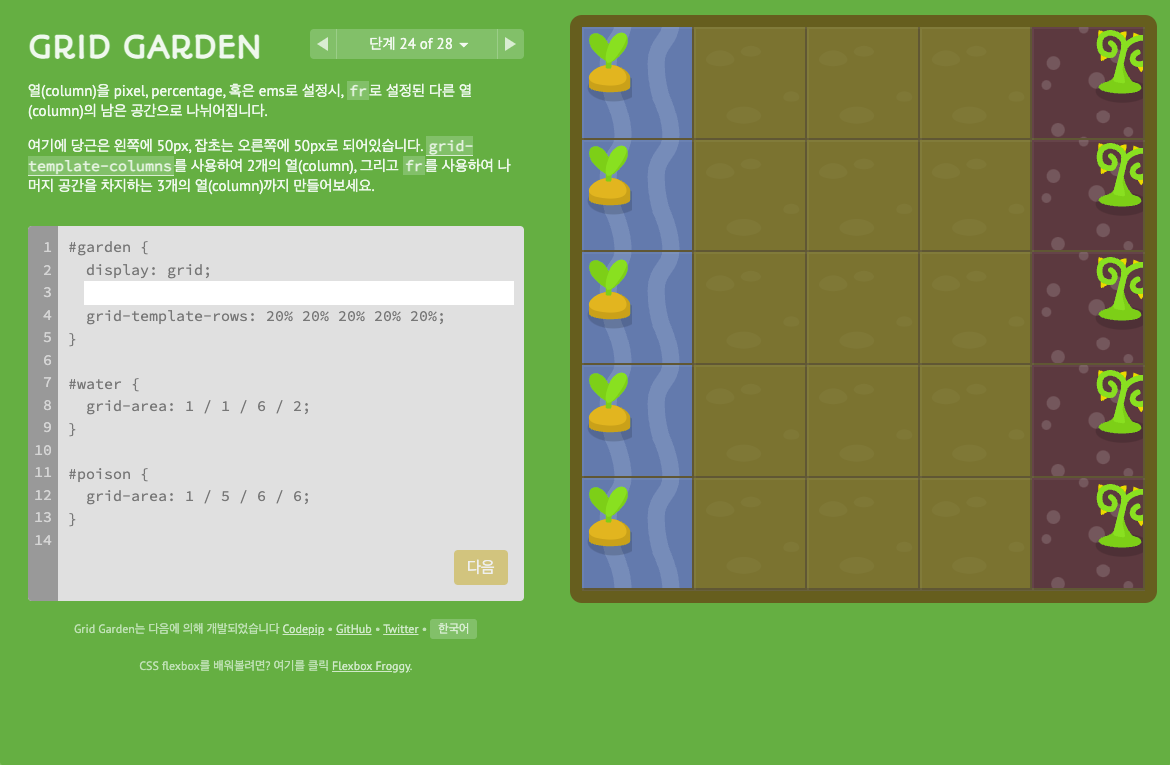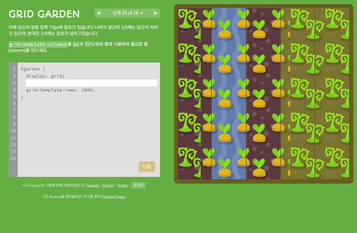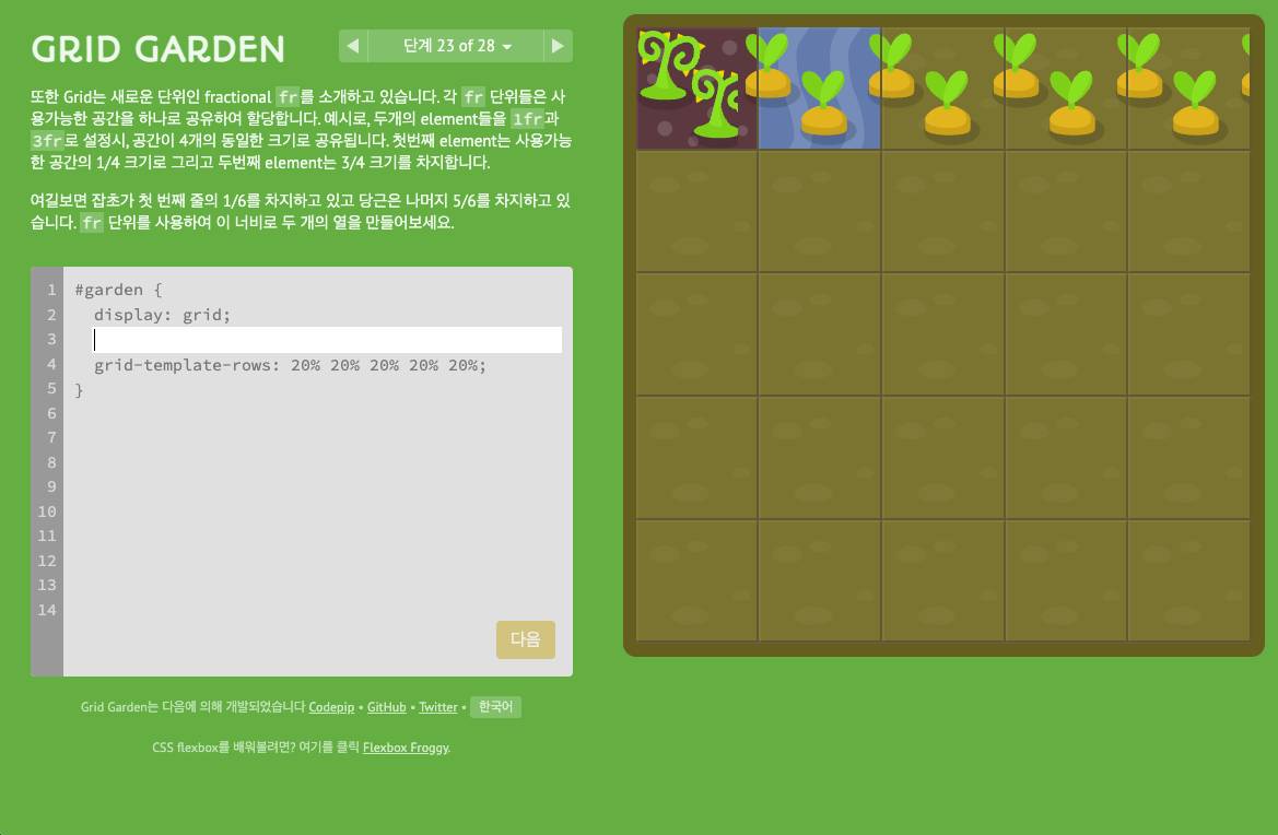https://cssgridgarden.com/#ko로 들어가면 즐길 수 있다.