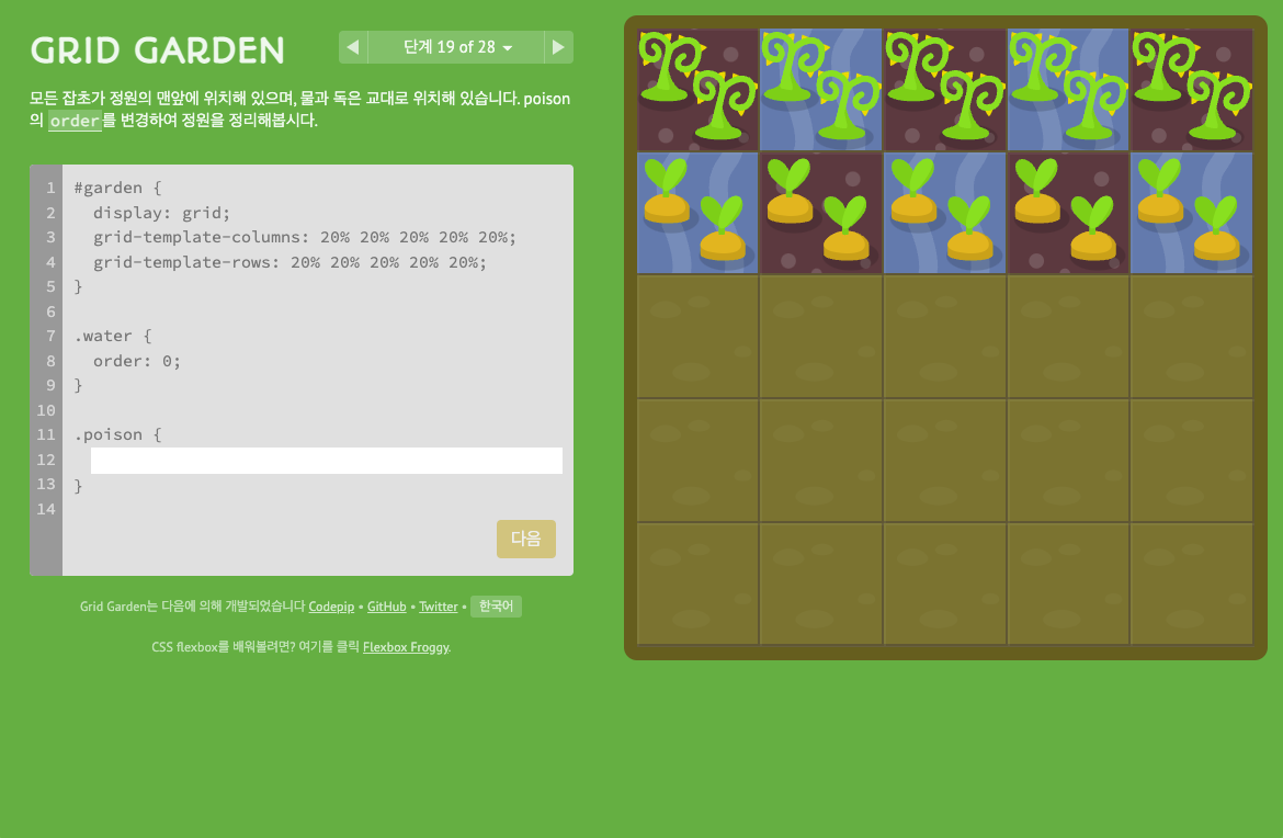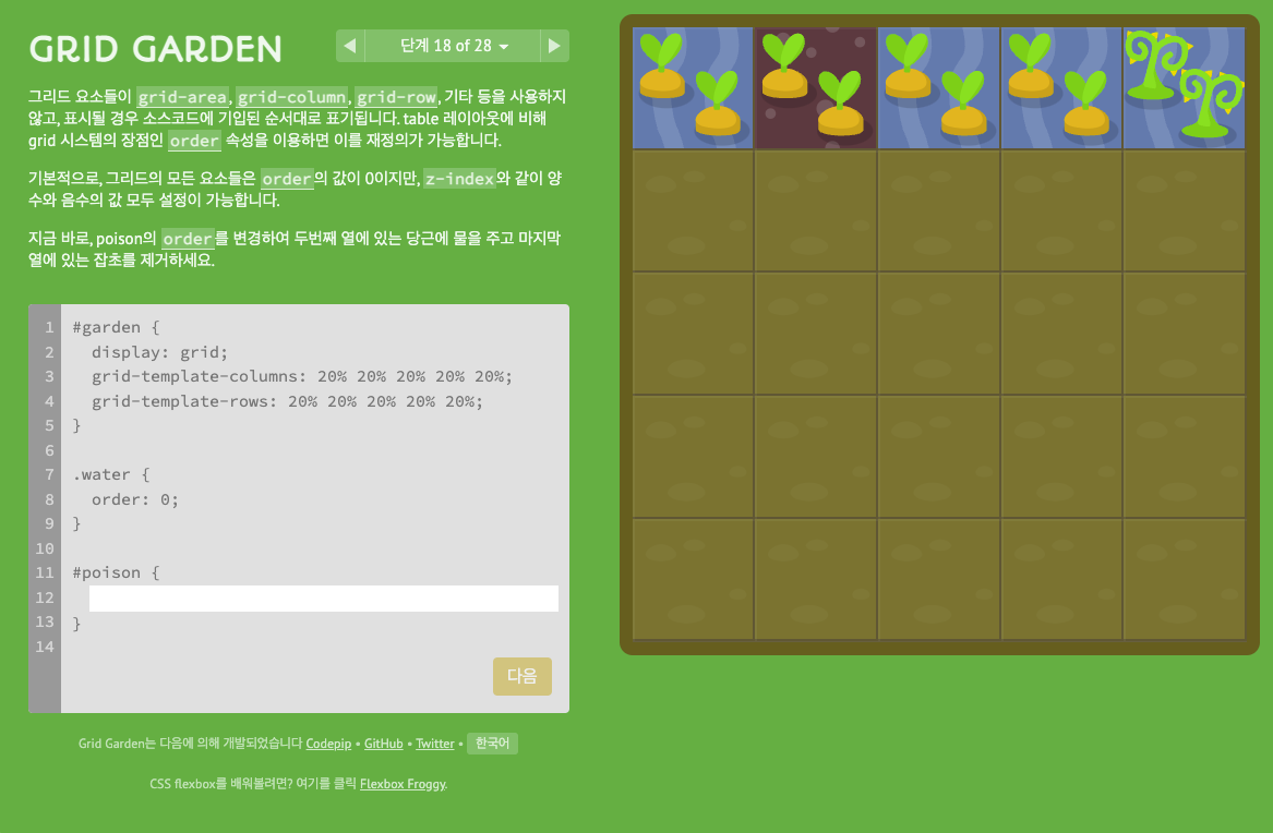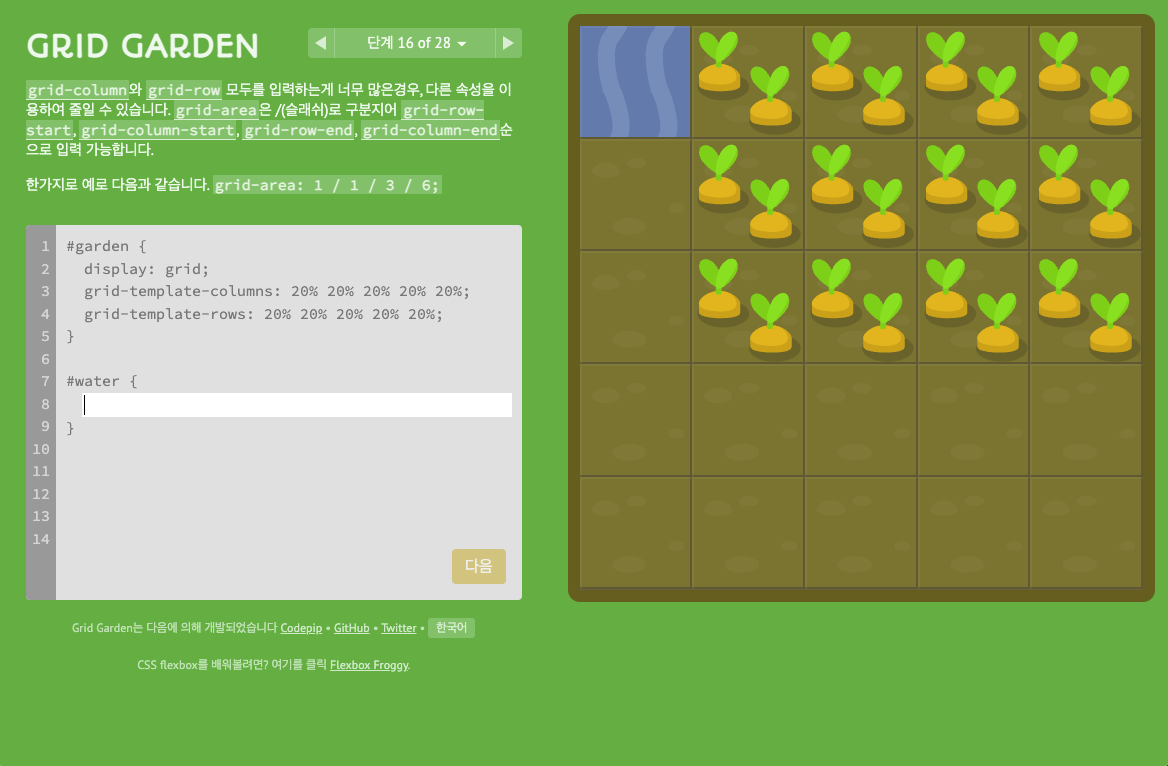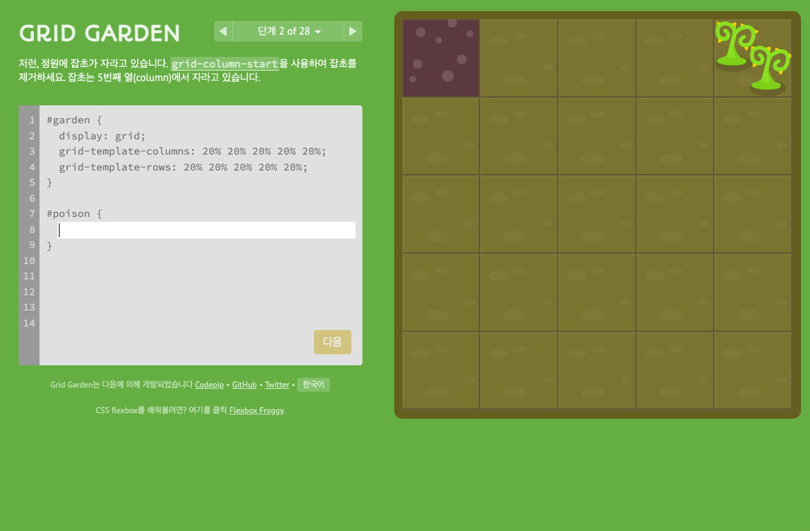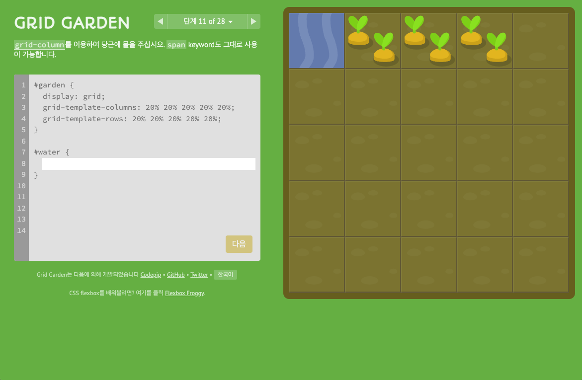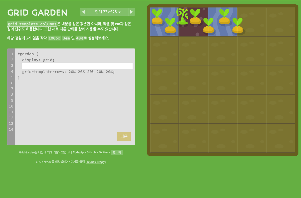 https://cssgridgarden.com/#ko로 들어가면 즐길 수 있다.