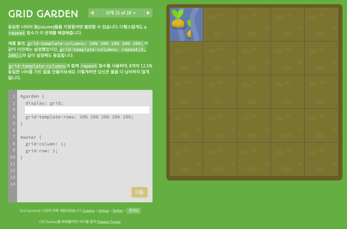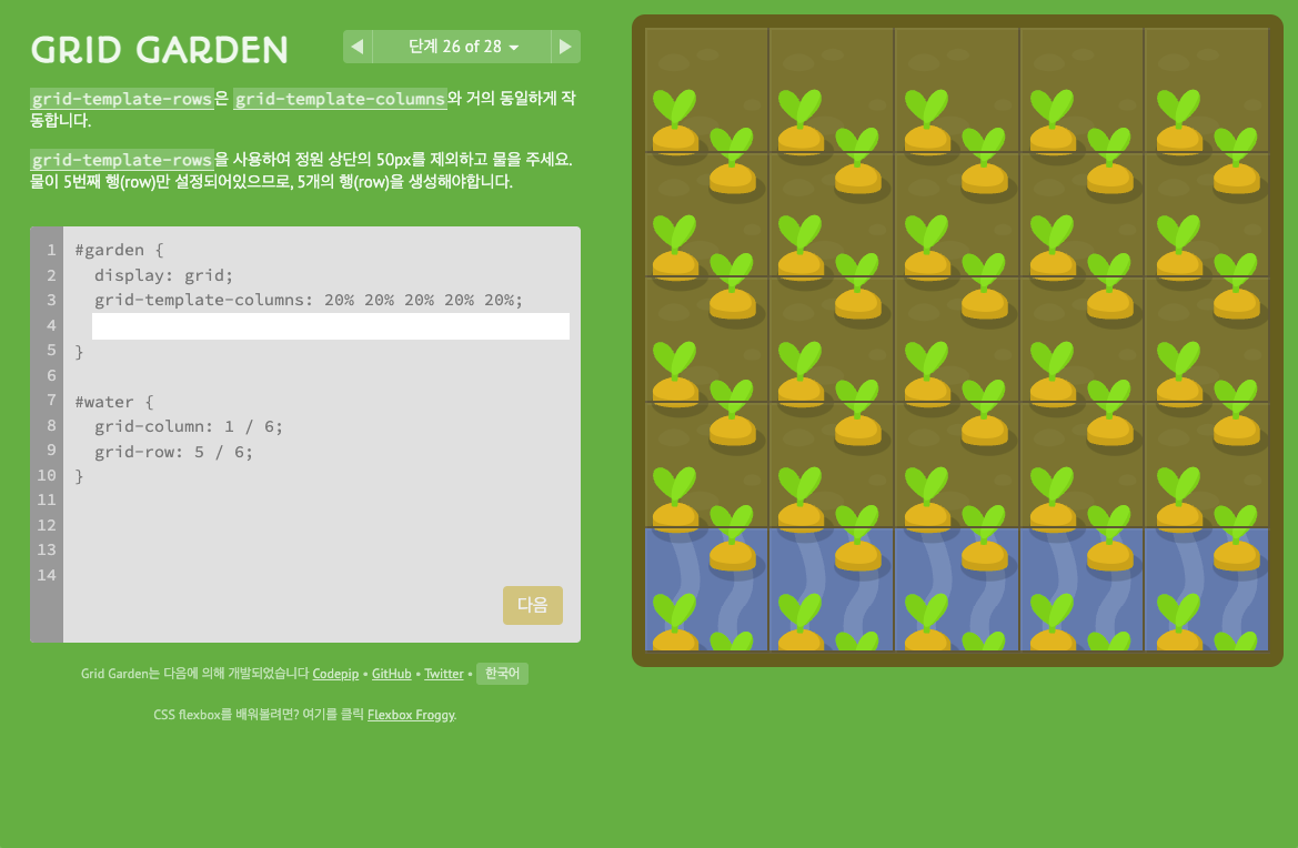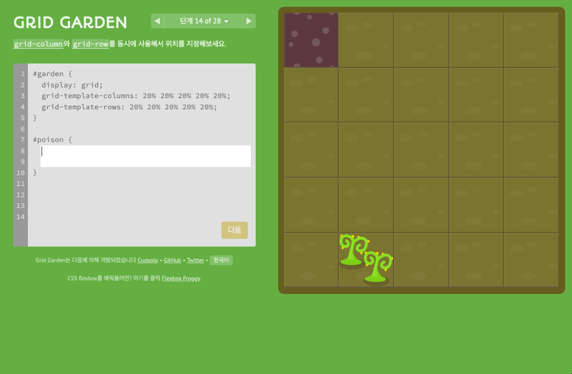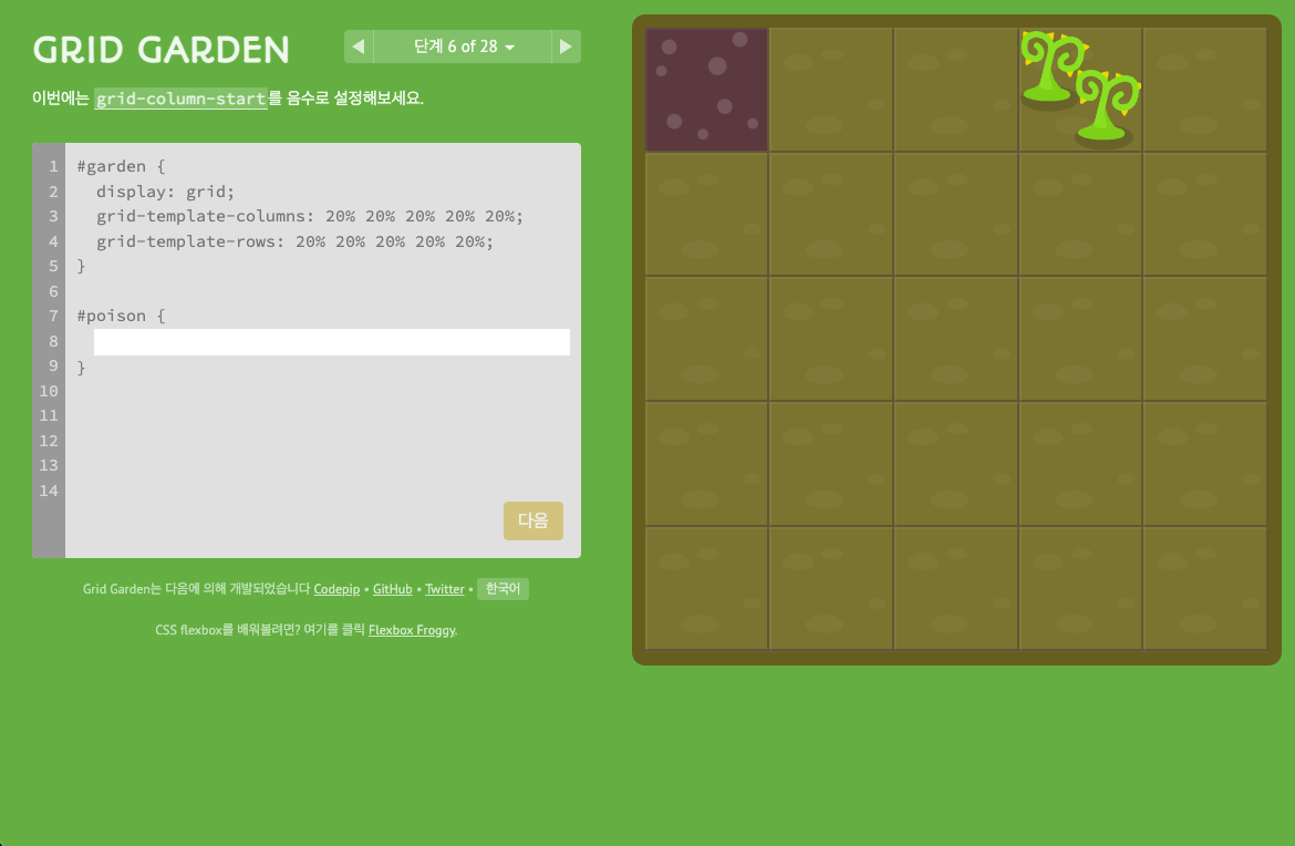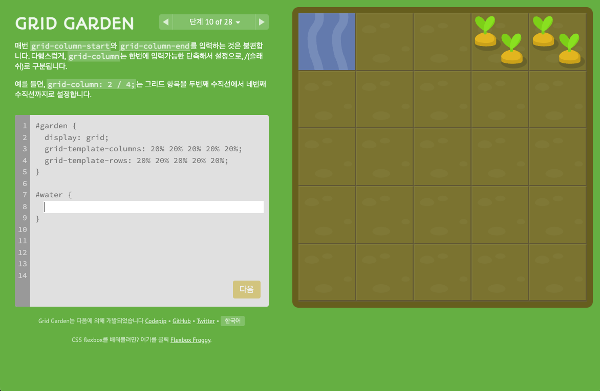 https://cssgridgarden.com/#ko로 들어가면 즐길 수 있다.